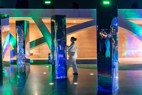 Prisms of Unity is an immersive outdoor installation in Ithra, Saudi Arabia, that explores identity, perception, and collective belonging through light and reflection. Designed as a four-part experiential journey, the installation uses mirrors, RGB lighting, and lenticular surfaces to create shifting reflections and coloured shadows that evolve with movement. Visitors become active participants, shaping the space through their presence. The centrepiece features a lenticular element that transforms from the viewer’s reflection into the emblem of Saudi Arabia, symbolising the connection between the individual and the nation. Created for Ithra and Saudi National Day, Prisms of Unity demonstrates how light-based design can activate public space and foster meaningful, inclusive engagement.