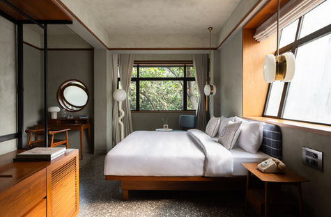 ACKM Studio collaborated on the design detailing, offering technical expertise to help translate this vision into tactile, human-centred interiors. Across 15 individually designed rooms, hand-laid terrazzo in varying hues, Indian marbles, and carefully curated objects create distinct yet interconnected experiences of stay. Thoughtful architectural gestures like the circular and slanted windows, open wardrobes, and subtle custom elements, form a cohesive thread throughout. Designed to be lived, felt, and even taken home, The Kin blurs the line between hotel, home, and design destination.
